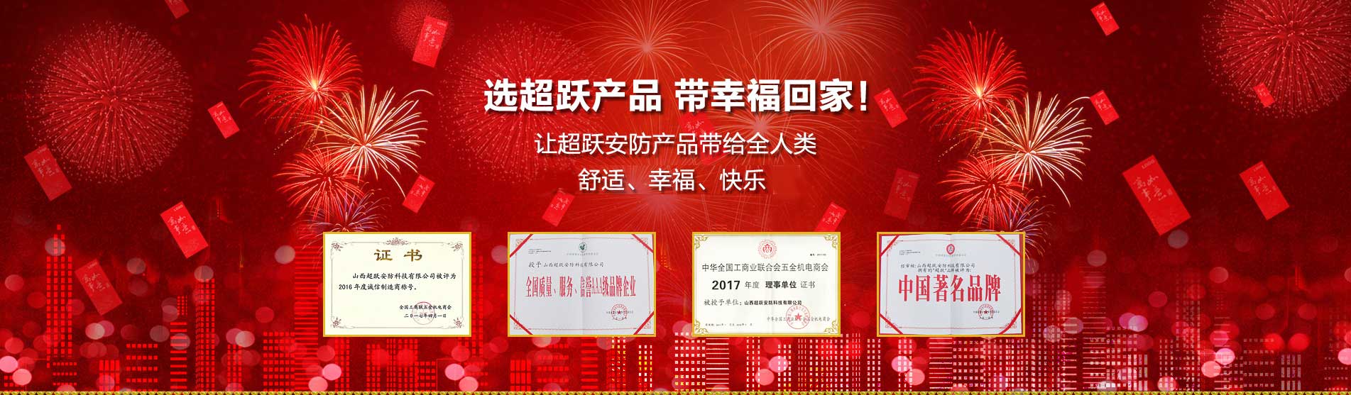 山西超躍安防科技有限公司(m.luckitems.com )成立于1998年,地處人杰地靈的山西省省會(huì)——太原市,公司注冊(cè)資金600萬(wàn)元人民幣,專(zhuān)業(yè)從事各類(lèi)防火門(mén),防火防盜入戶(hù)門(mén),各類(lèi)防火卷簾防火窗,工業(yè)門(mén),消防工程,特種門(mén)窗,鑄鋁門(mén)窗,智能一卡通系統(tǒng),新風(fēng)系統(tǒng),智能監(jiān)控系統(tǒng),智能家居。
