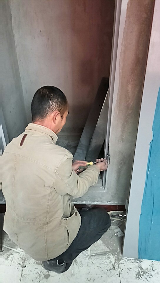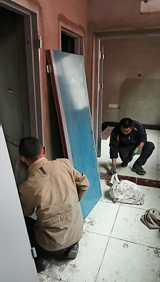 2017年11月9日陽(yáng)曲縣萬(wàn)辰小區(qū)安裝防火門(mén)施工作業(yè)圖片